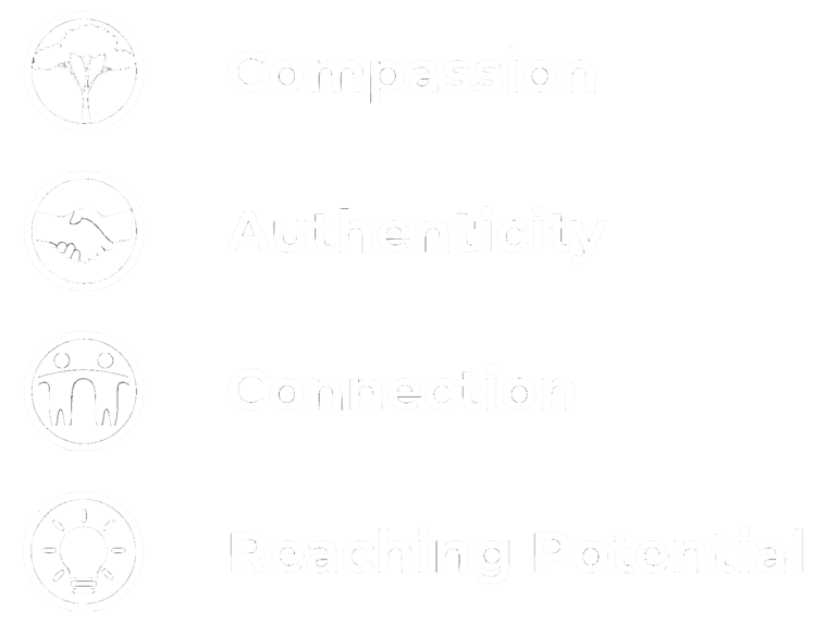 In everything we do, we hold Compassion, Authenticity, Connection and Reaching Potential as our guiding values, the bearings that direct us in every piece of work that we deliver, and in every connection we have with our clients.